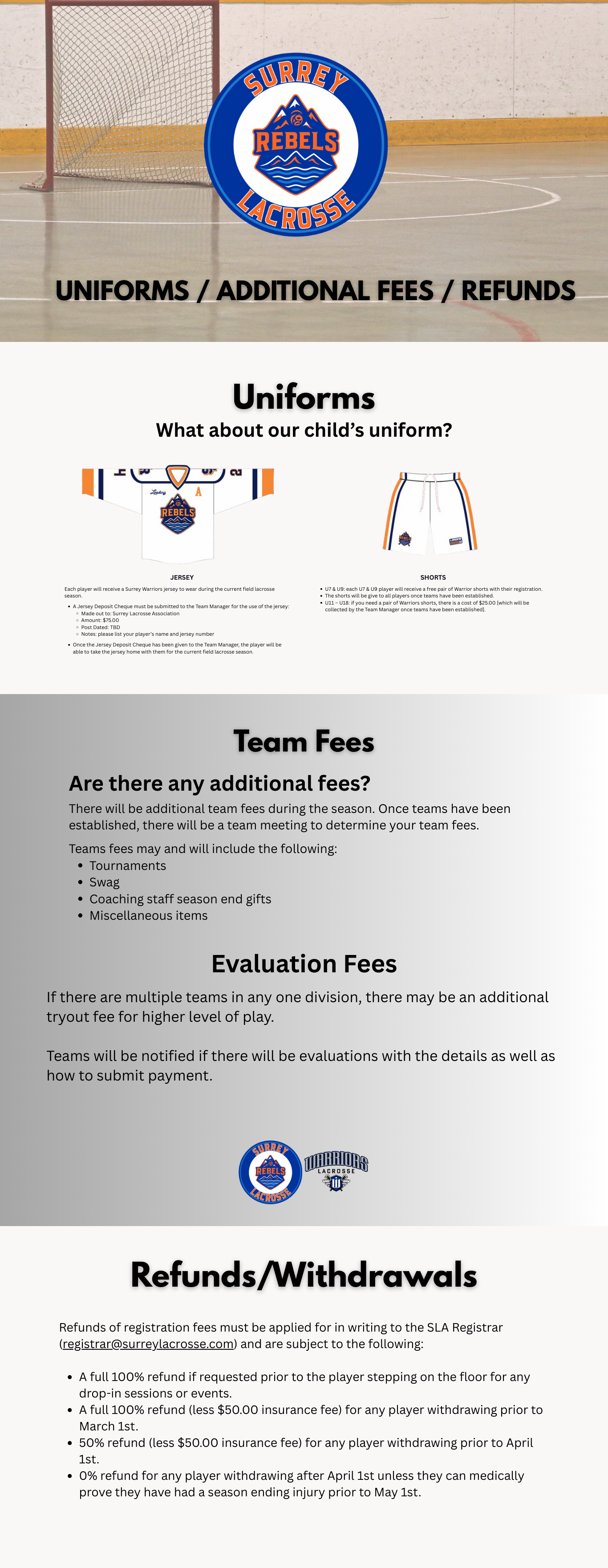 • Uniforms/Fees/Refunds