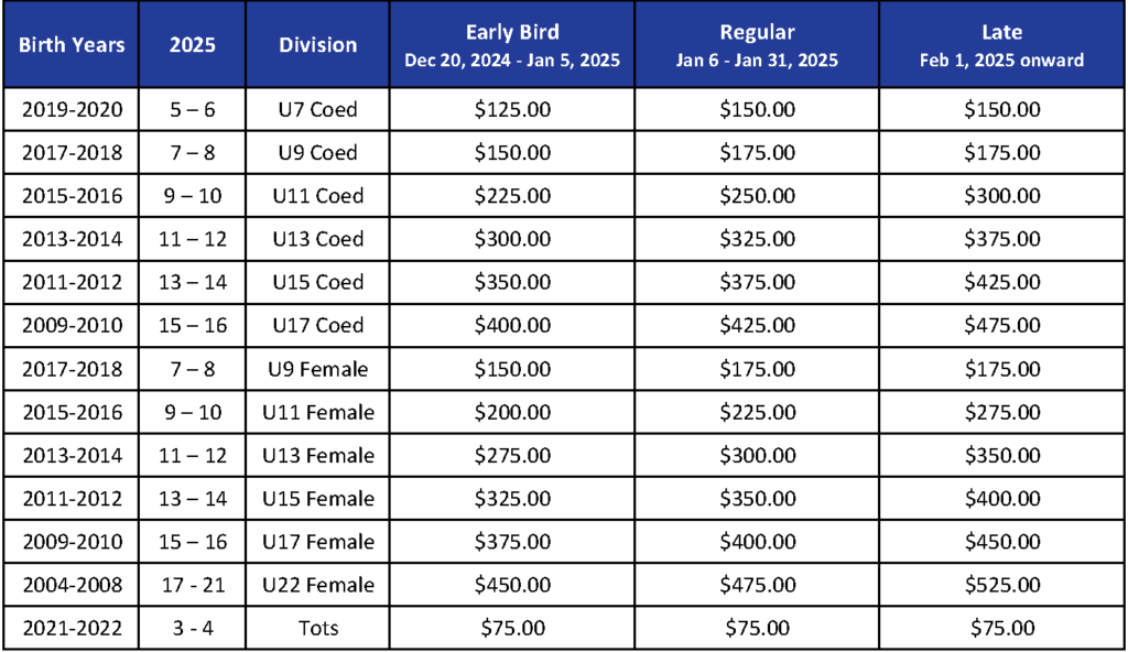 Additional tryout registration fees may be applied once the announcement for tryouts is made.